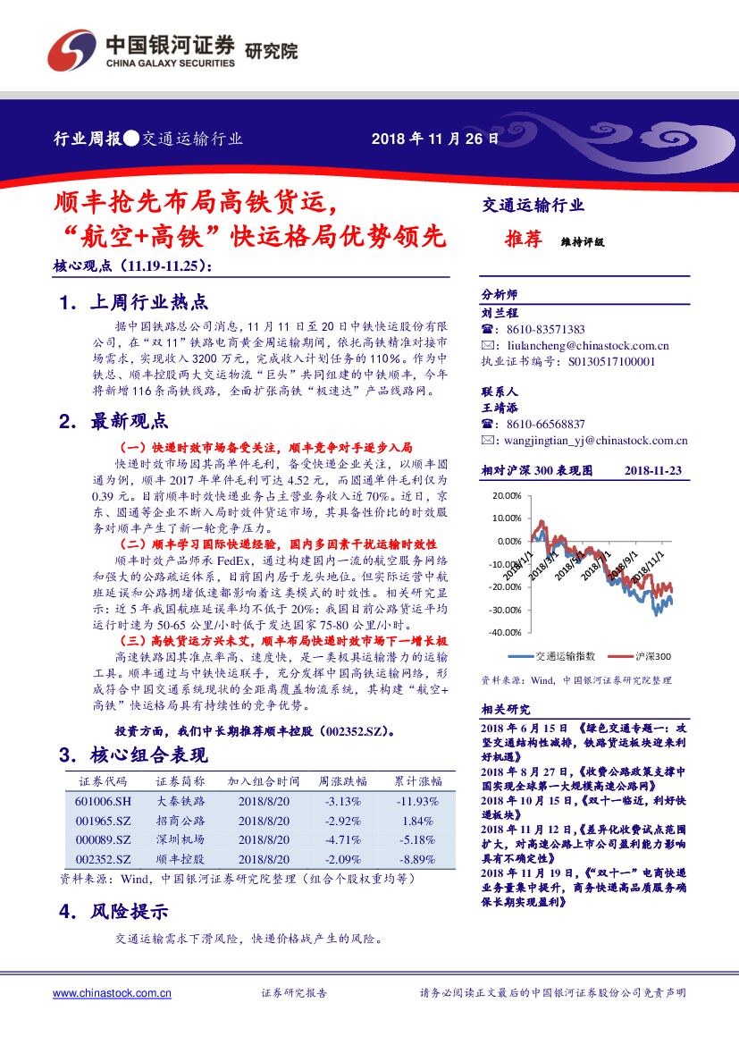中国银河:交通运输行业周报:顺丰抢先布局高铁货运,“航空+高铁”快运格局优势领先.pdf