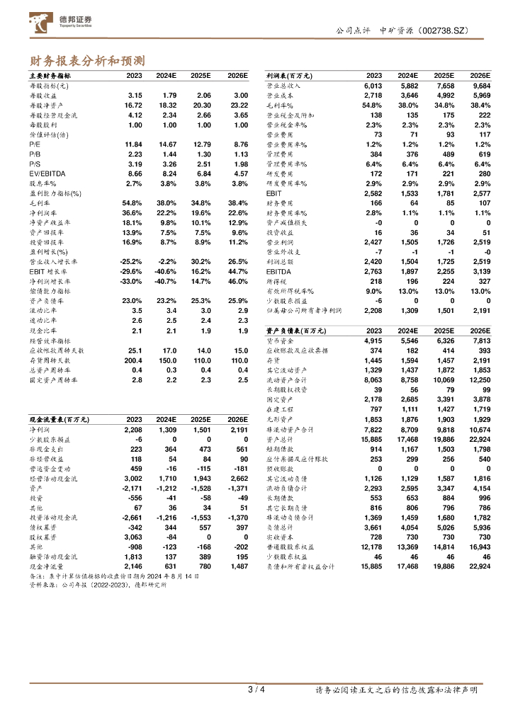 德邦证券:中矿资源(002738)-锂板块自有矿锂盐产销量大幅提升,单吨成本较2023年降低超40%.pdf