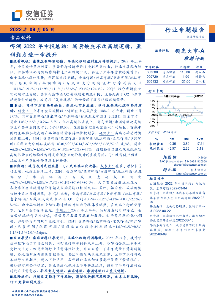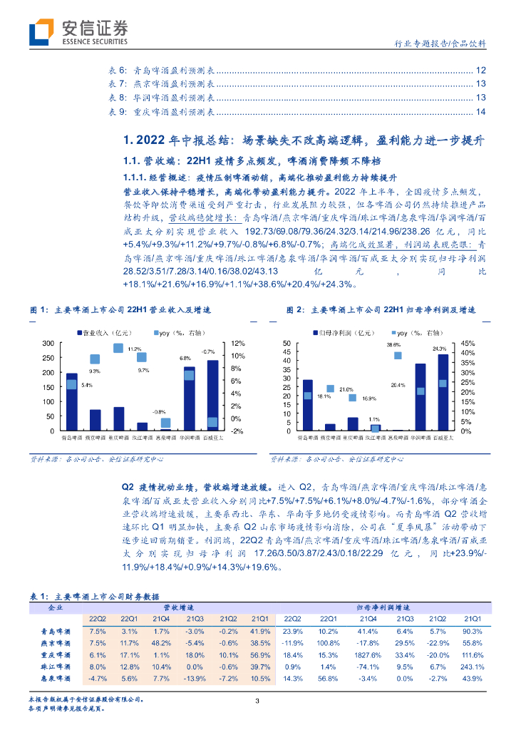 安信证券:食品饮料:啤酒2022年中报总结:场景缺失不改高端逻辑,盈利能力进一步提升.pdf