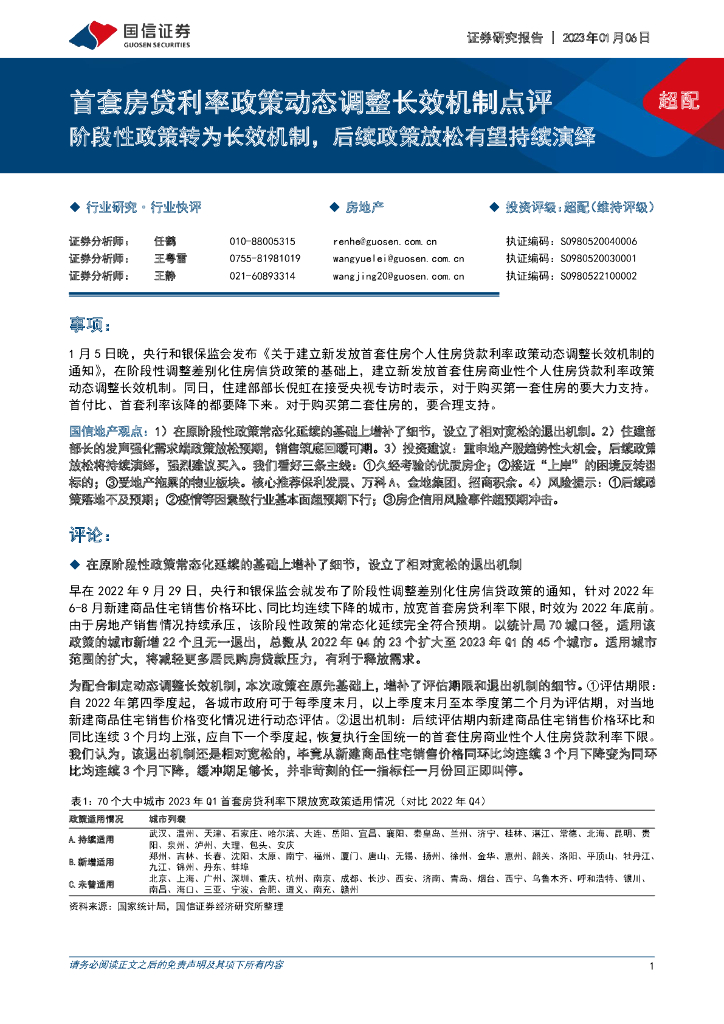 国信证券:房地产:首套房贷利率政策动态调整长效机制点评-阶段性政策转为长效机制,后续政策放松有望持续演绎.pdf