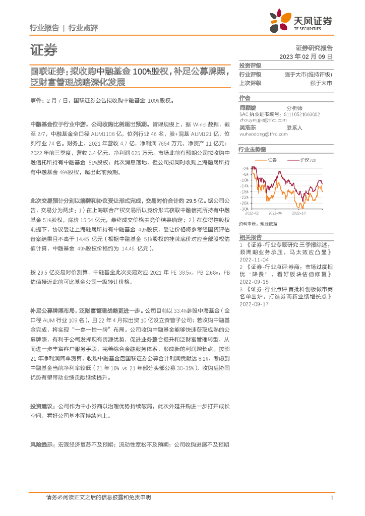 天风证券:证券行业点评:国联证券:拟收购中融基金100%股权,补足公募牌照,泛财富管理战略深化发展.pdf