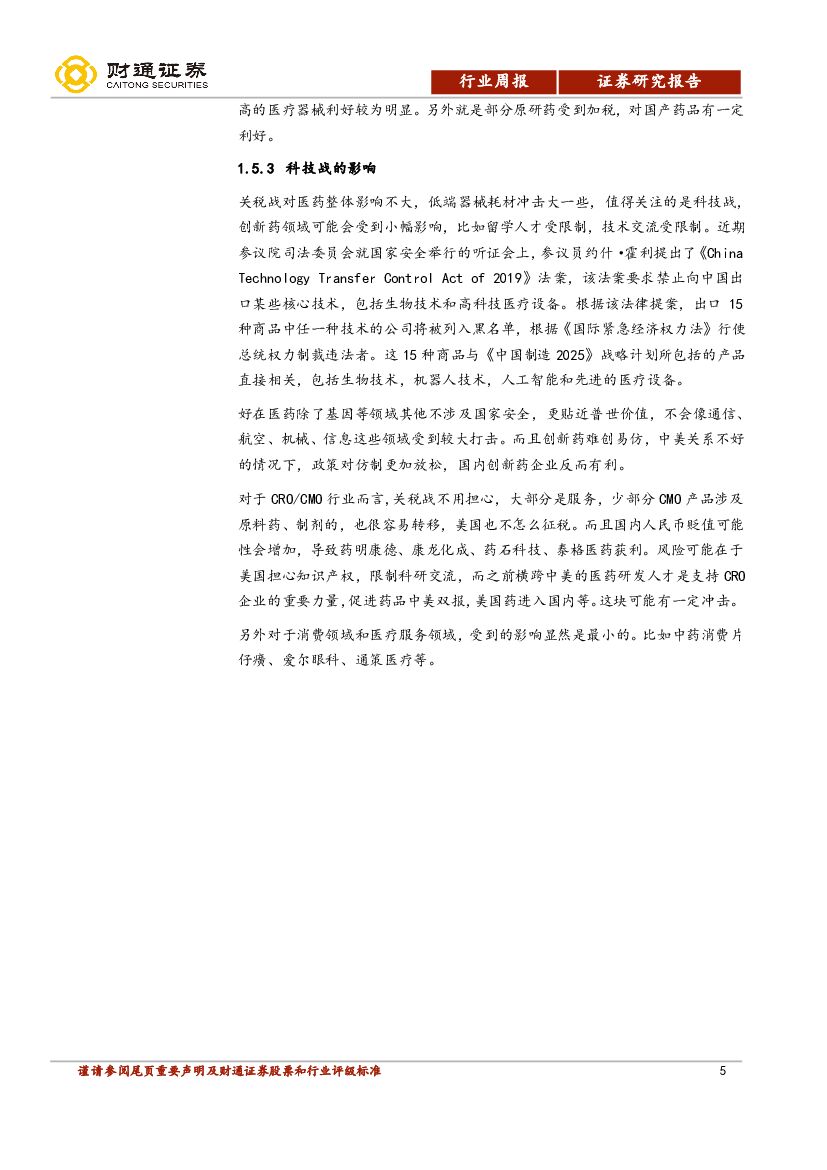 财通证券:医药生物行业周报:贸易摩擦逐步扩展,关注科技战影响.pdf