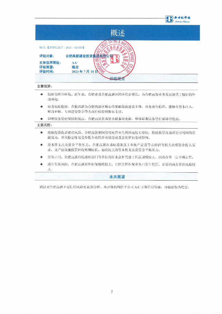 新世纪:合肥高新建设投资集团有限公司信用评级报告.pdf