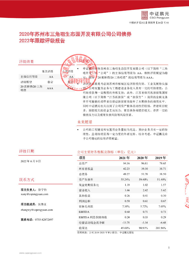 鹏元:2020年苏州市三角咀生态园开发有限公司公司债券2022年跟踪评级报告.pdf