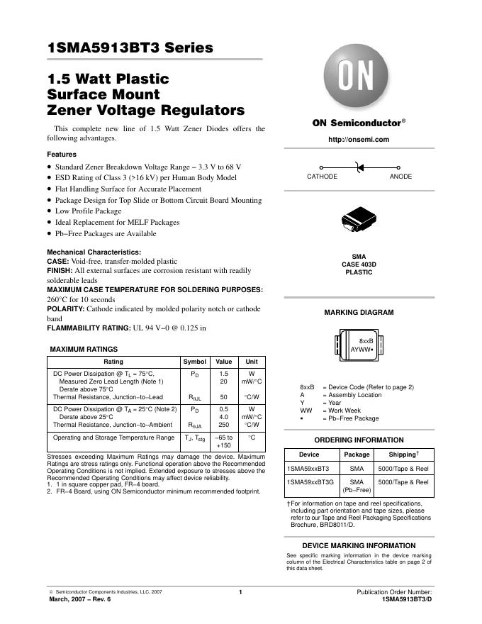 ON SEMICONDUCTOR 1SMA5913BT3 Series 数据手册.pdf