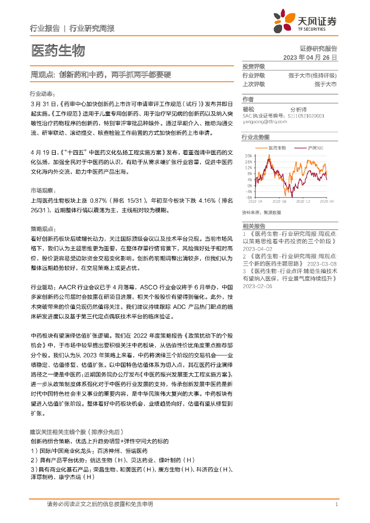 天风证券:医药生物周观点:创新药和中药,两手抓两手都要硬.pdf