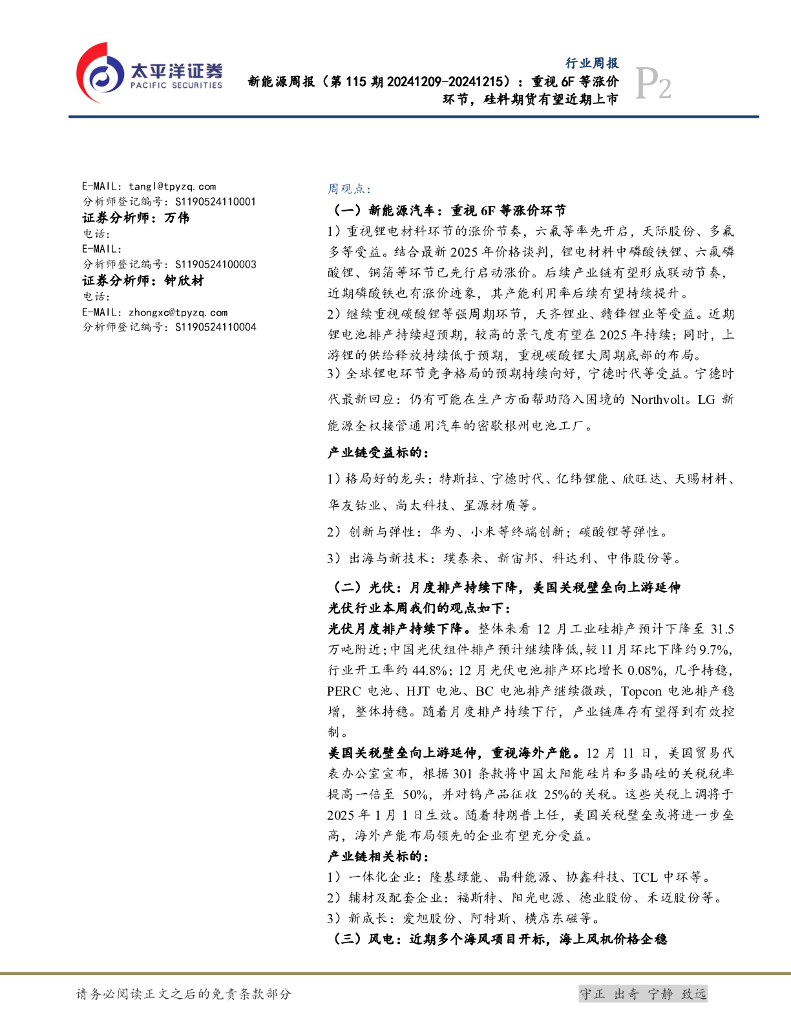 太平洋证券:新能源行业周报(第115期):重视6F等涨价环节,硅料期货有望近期上市.pdf