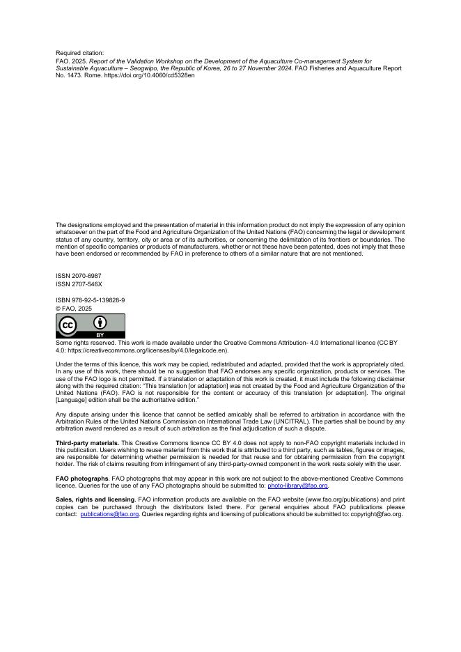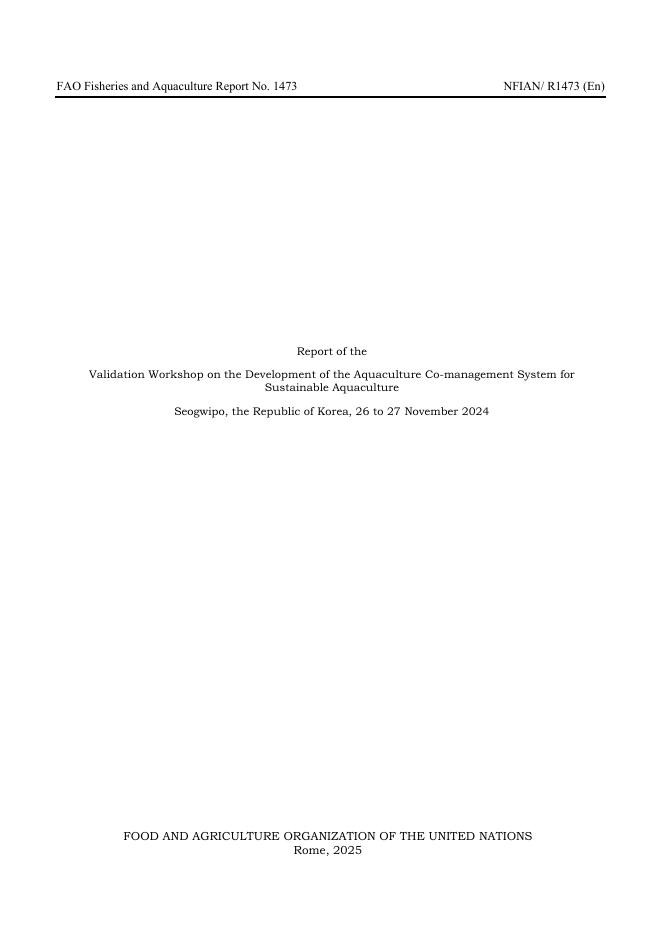 FAO联合国粮农组织:2024年11月26日至27日关于可持续水产养殖的水产养殖共同管理系统开发的验证研讨会报告(英文版).pdf