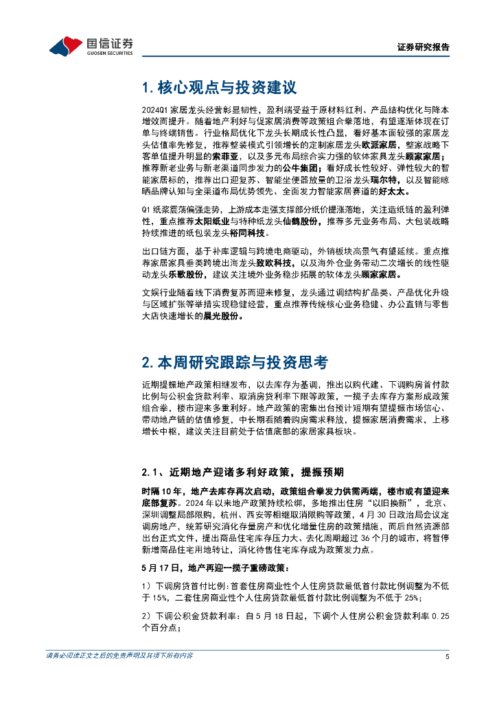 国信证券:轻工制造行业周报(24年第20周):地产迎诸多利好政策,关注家居龙头的估值修复.pdf