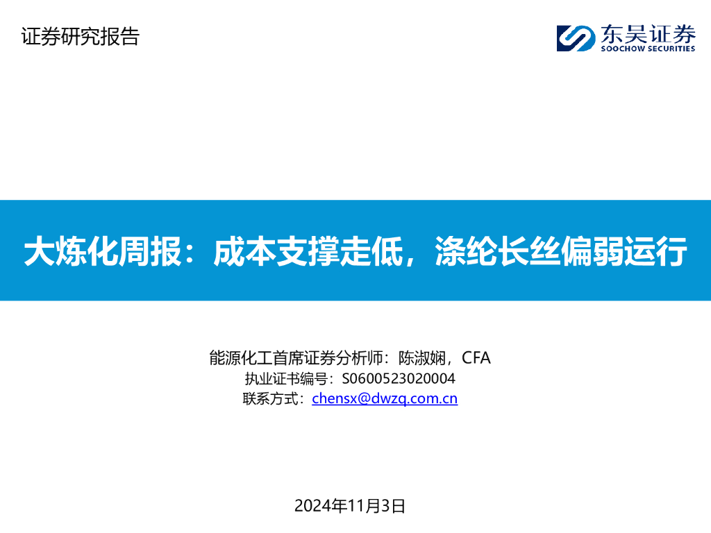 东吴证券:大炼化周报:成本支撑走低,涤纶长丝偏弱运行.pdf