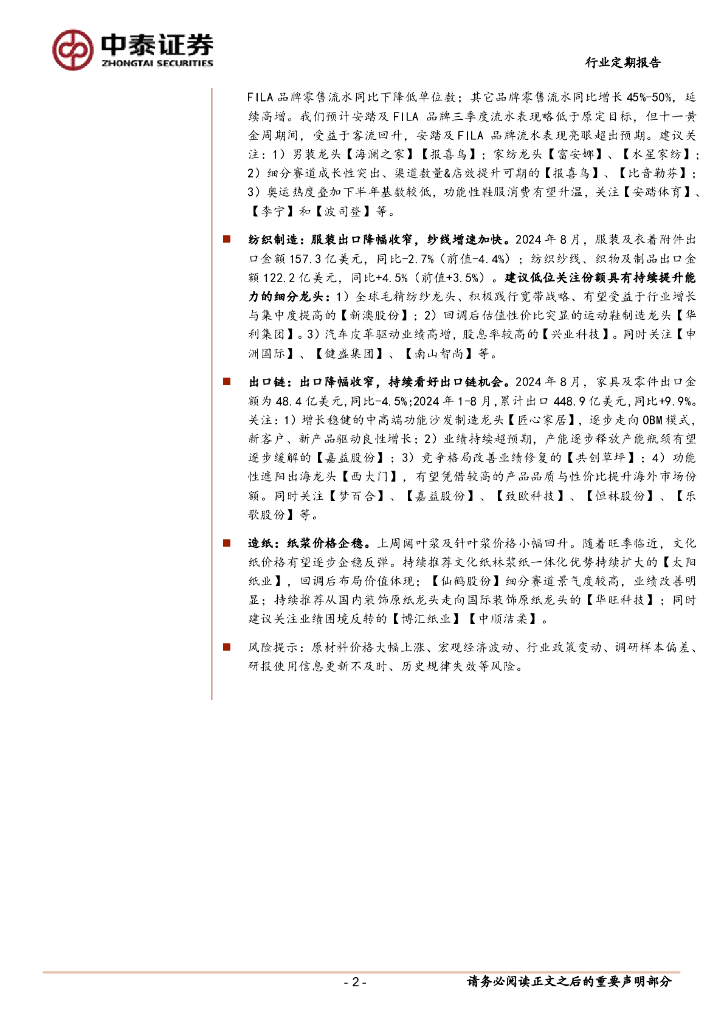 中泰证券:轻工制造及纺服服饰行业周报:轻纺Q3前瞻一览,家居以旧换新持续落地需求改善可期.pdf