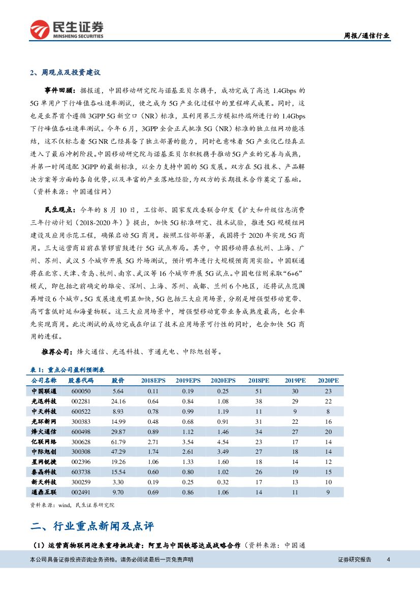 民生证券:通信行业周报:中国移动携手诺基亚贝尔完成5G测试,5G产业化步入冲刺阶段.pdf