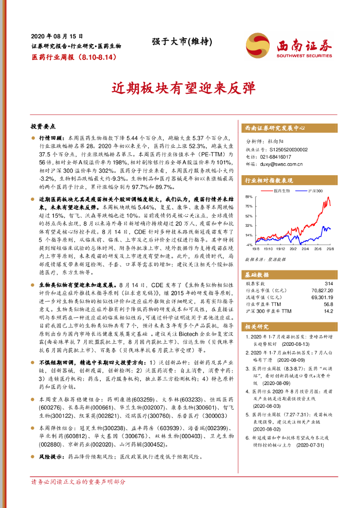 西南证券:医药行业周报:近期板块有望迎来反弹.pdf