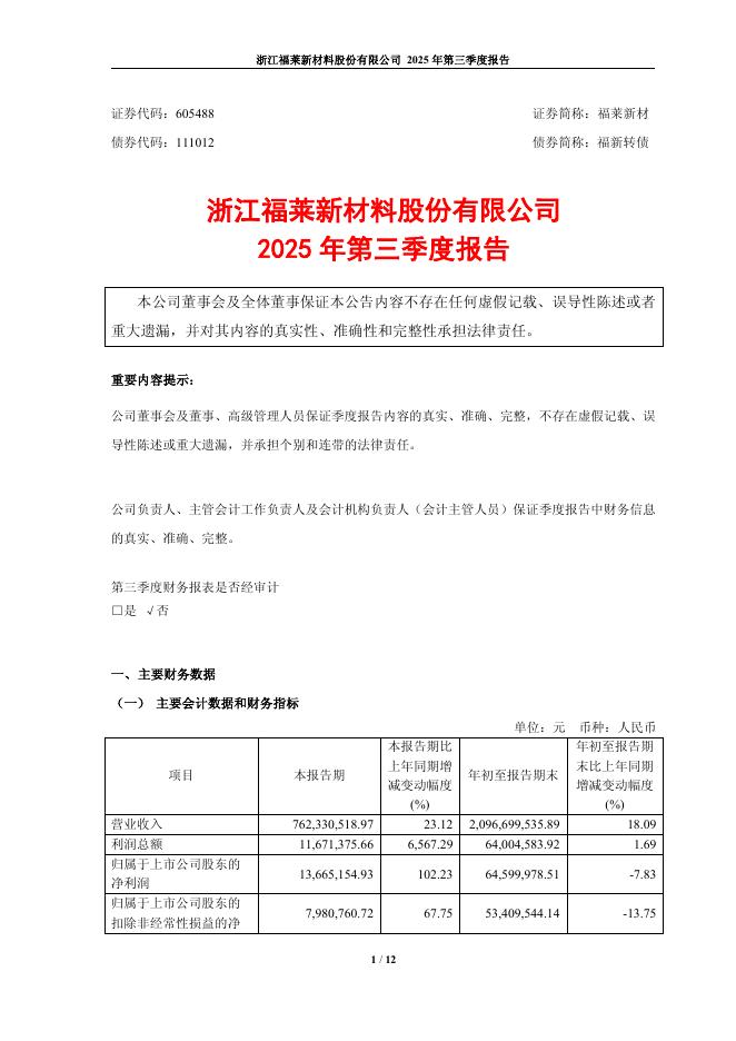 111012-福莱新材:福莱新材2025年第三季度报告.pdf