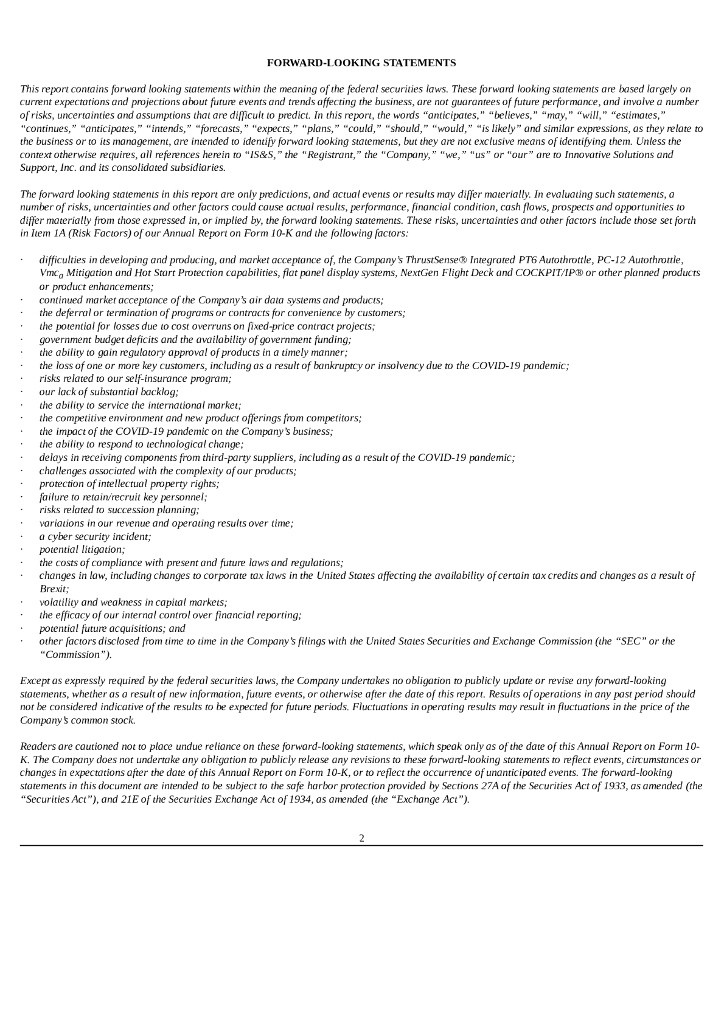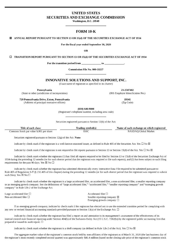 Innovative Solutions and Support, Inc.(ISSC)2020财年年度报告(英文版).pdf