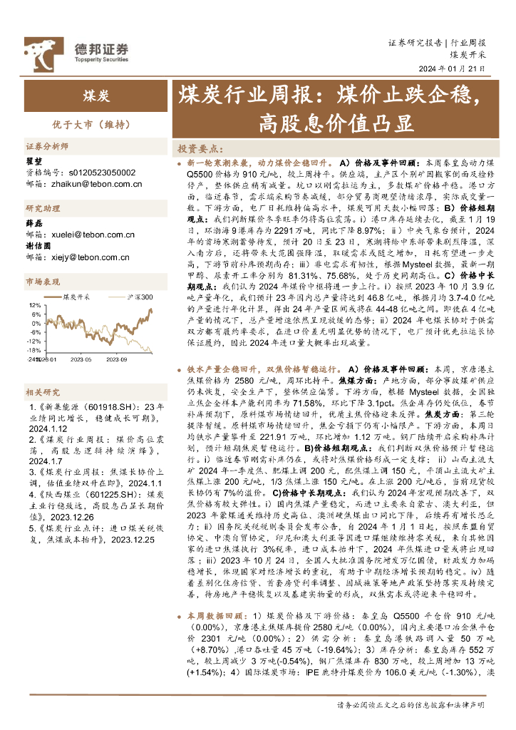 德邦证券:煤炭行业周报:煤价止跌企稳,高股息价值凸显.pdf