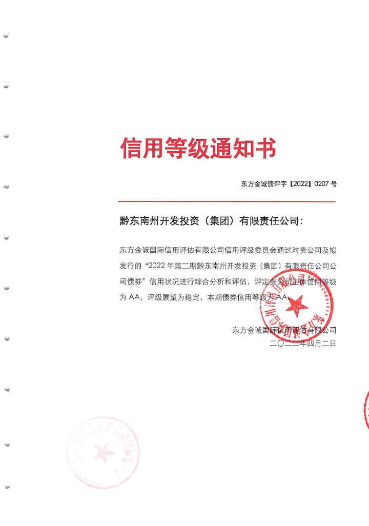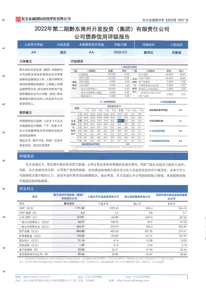 东方金诚:2022年第二期黔东南州开发投资(集团)有限责任公司公司债券信用评级报告.pdf