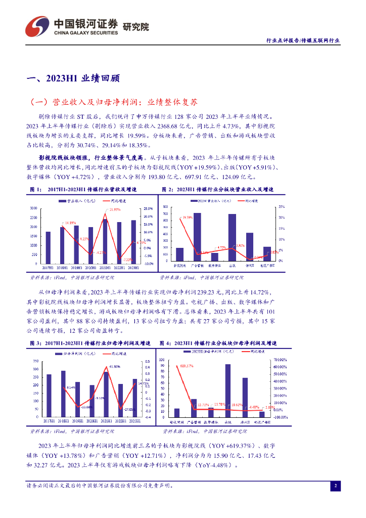中国银河:传媒互联网行业2023H1业绩总结:行业复苏态势明显,业绩修复持续进行.pdf