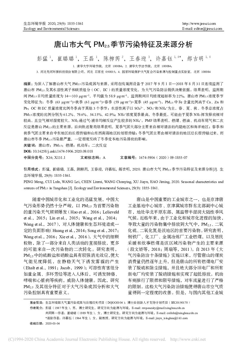 唐山市大气PM2.5季节污染特征及来源分析.pdf