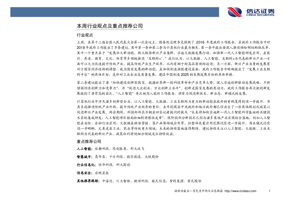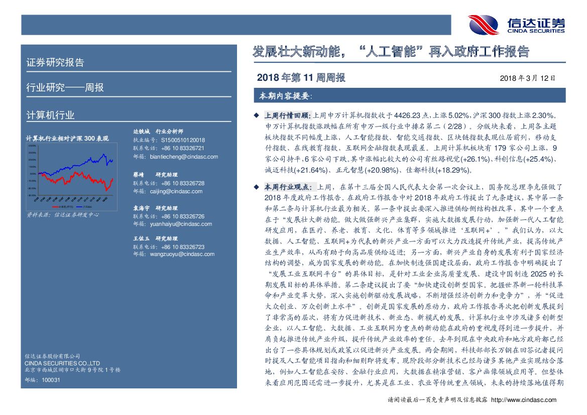 信达证券:计算机行业2018年第11周周报:发展壮大新动能,“人工智能”再入政府工作报告.pdf