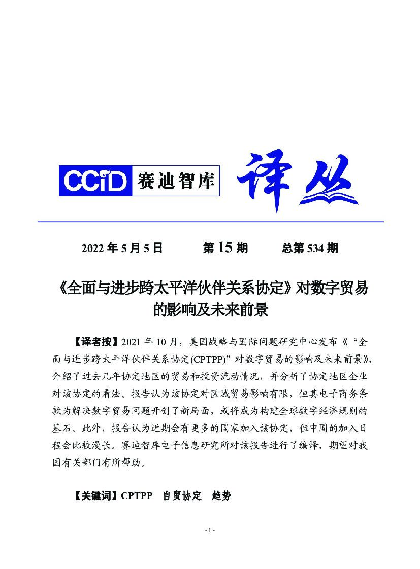 赛迪译从:《全面与进步跨太平洋伙伴关系协定》对数字贸易的影响及未来前景.pdf