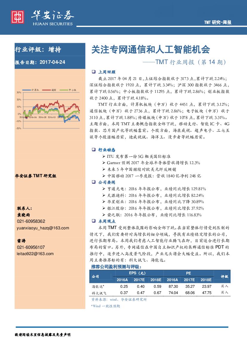 华安证券:TMT行业周报:关注专网通信和人工智能机会.pdf