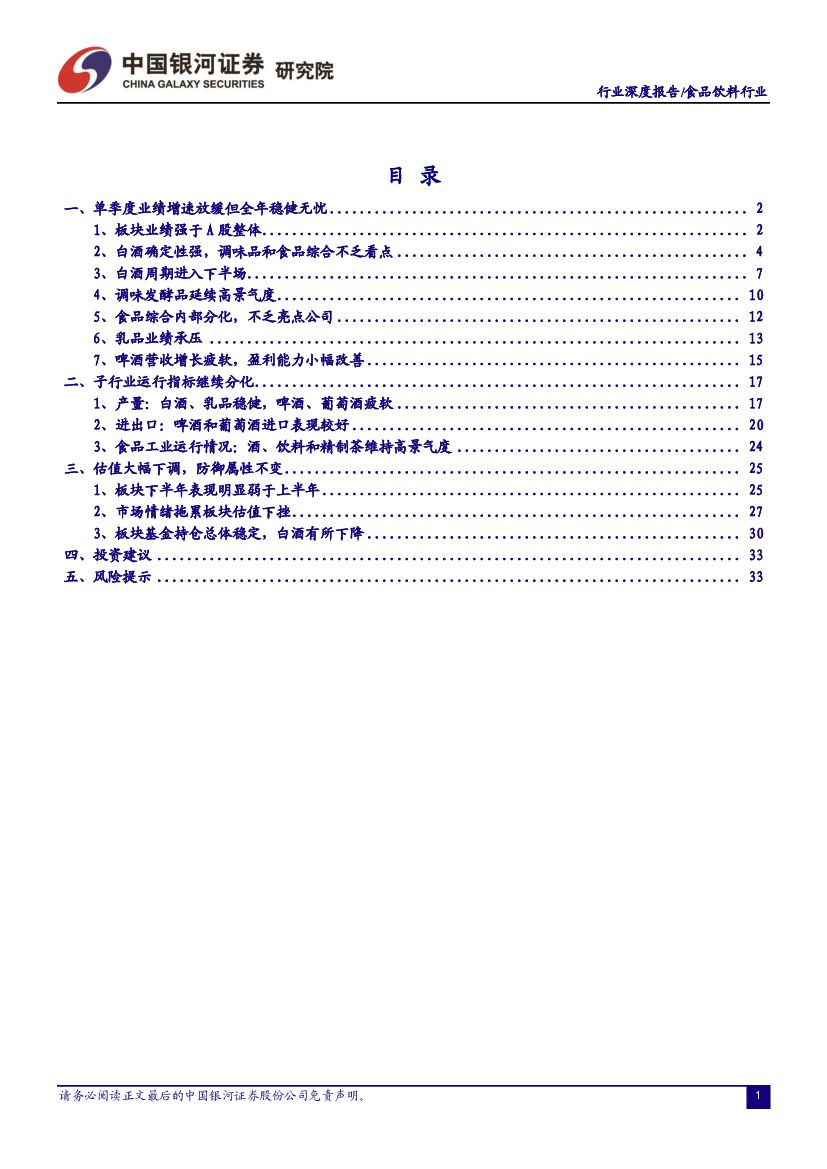 中国银河:食品饮料行业:三季单季增速放缓,整体盈利能力有所加强.pdf