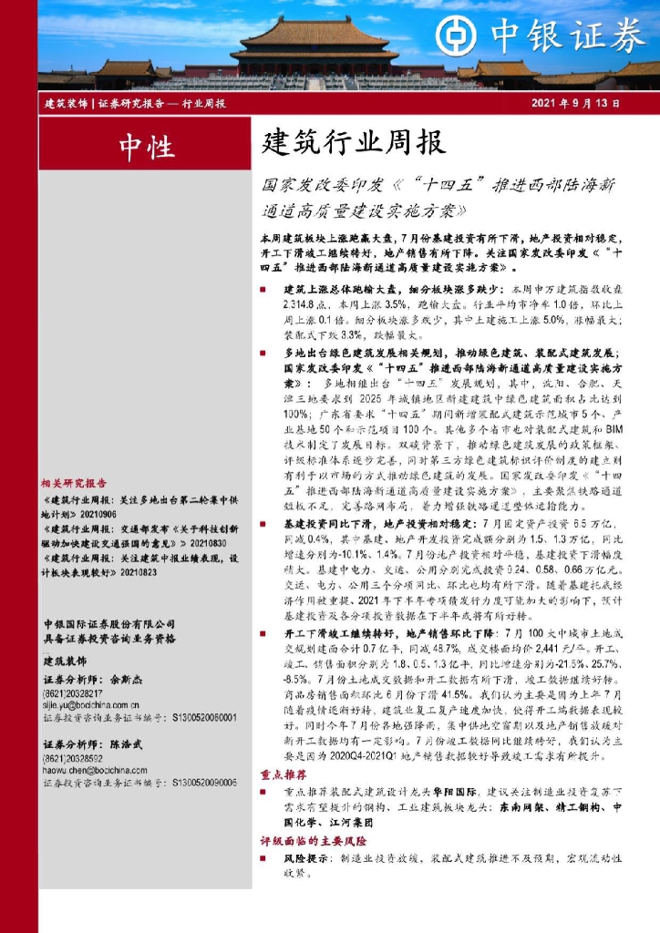 中银证券:建筑行业周报:国家发改委印发《“十四五”推进西部陆海新通道高质量建设实施方案》.pdf