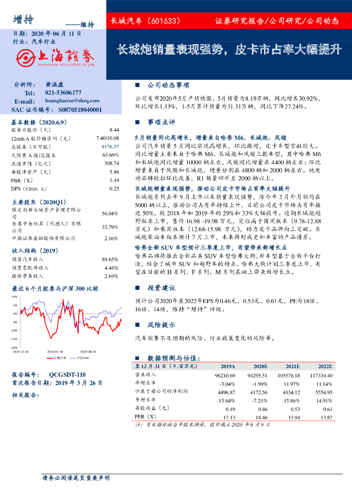 上海证券:长城汽车(601633)-长城炮销量表现强势,皮卡市占率大幅提升.pdf