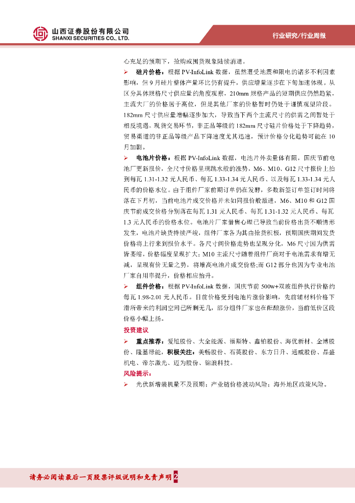 山西证券:太阳能行业周报:硅料价格逐渐平稳,电池片缺货状况延续.pdf