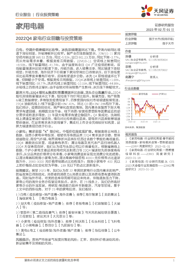 天风证券:家用电器行业投资策略:2022Q4家电行业前瞻与投资策略.pdf