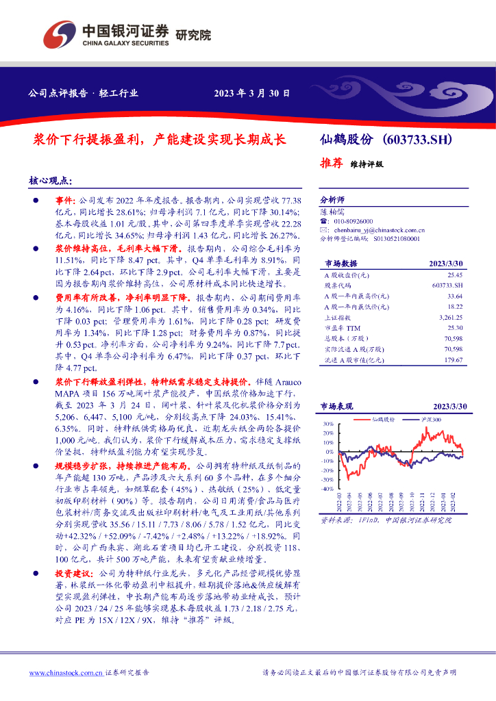 中国银河:仙鹤股份(603733)-浆价下行提振盈利,产能建设实现长期成长.pdf