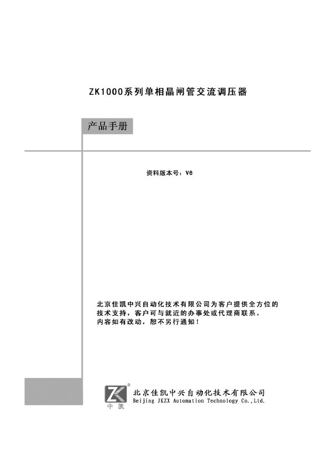 北京佳凯中兴自动化技术有限公司 ZK100 系列单相晶闸管交流调压器 产品手册.pdf