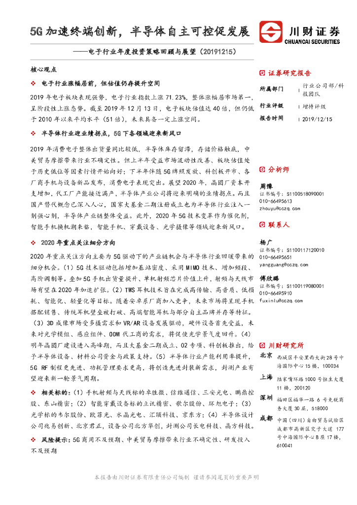川财证券:电子行业年度投资策略回顾与展望:5G加速终端创新,半导体自主可控促发展.pdf