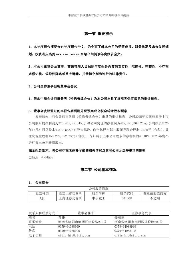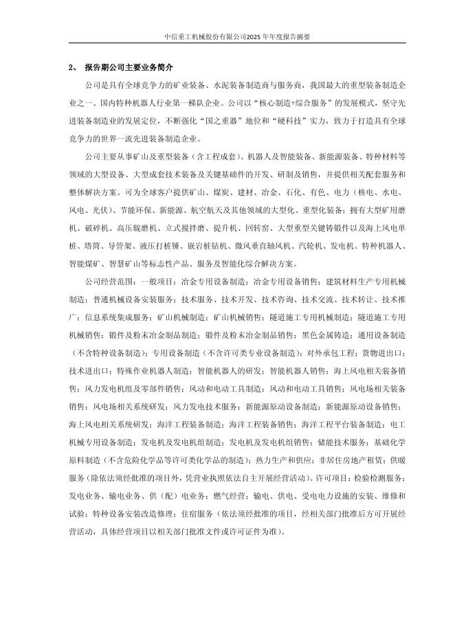 601608-中信重工:中信重工2025年年度报告摘要.pdf