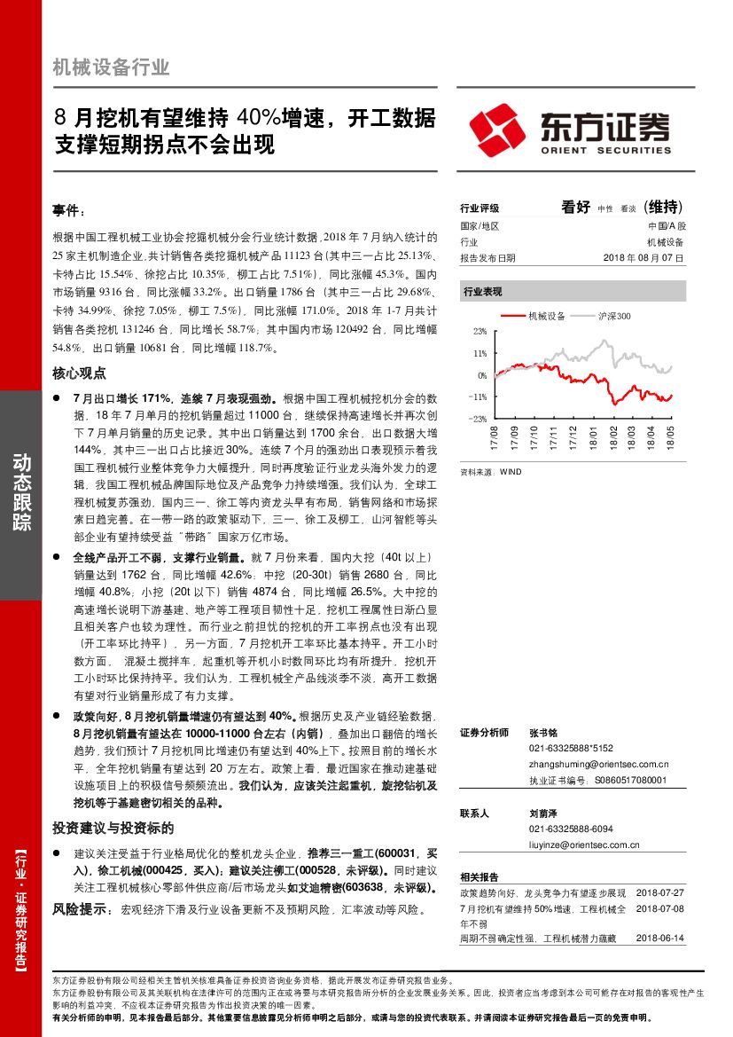 东方证券:机械设备行业动态跟踪:8月挖机有望维持40%增速,开工数据支撑短期拐点不会出现.pdf