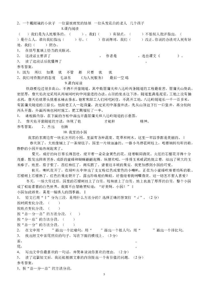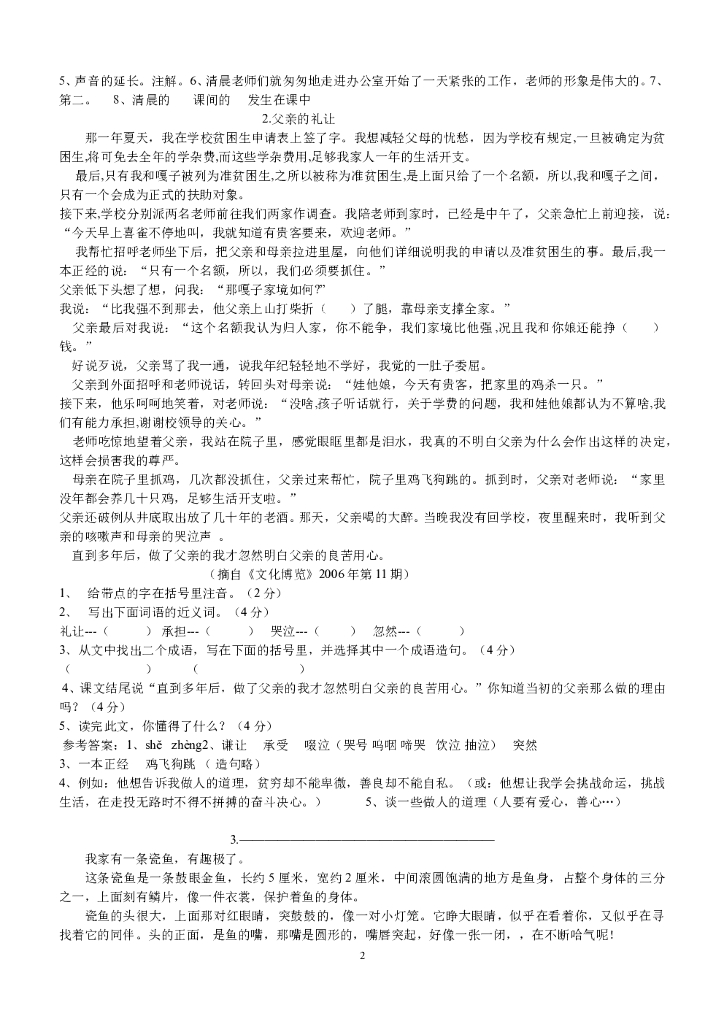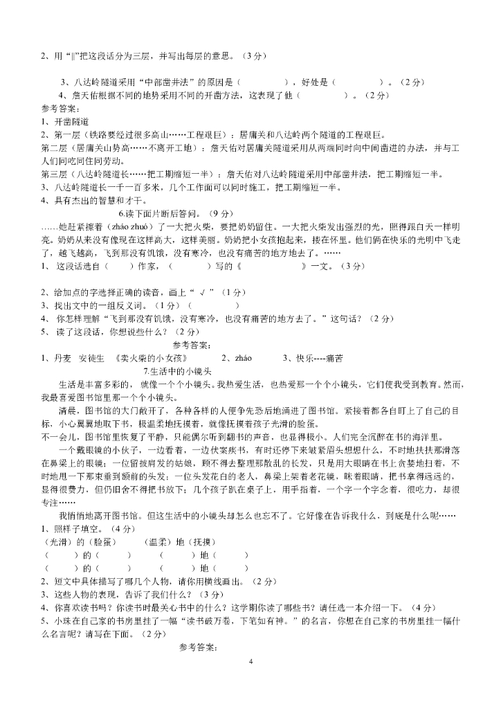 100篇小学语文阅读理解【60页】.doc