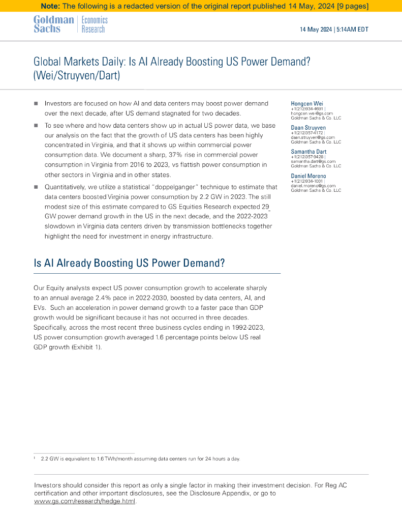 高盛:2024人工智能是否已经提振了美国的电力需求?(英文版).pdf