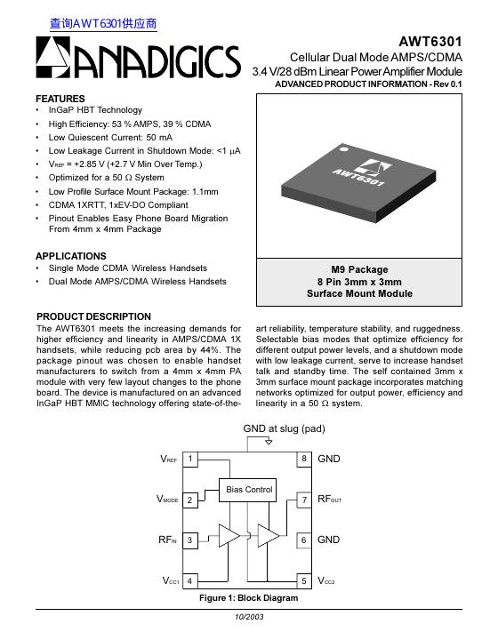 NATIONAL SEMICONDUCTOR - May 27, 2008 DS15BA101 1.5 Gbps Differential Buffer with Adjustable Output Voltage General 说明书
