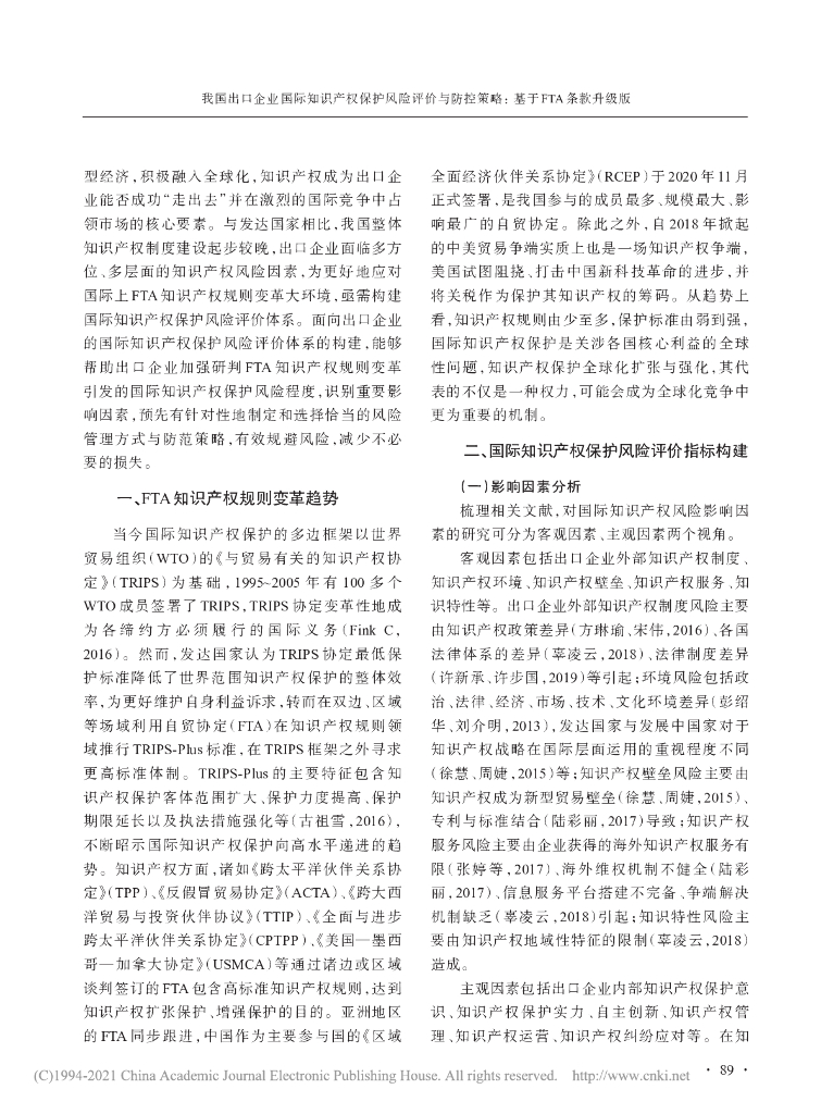 我国出口企业国际知识产权保护风险评价与防控策略——基于FTA条款升级版.pdf