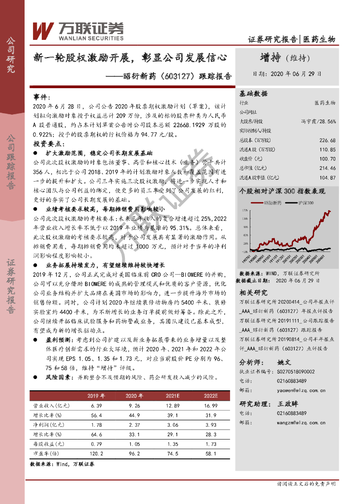 万联证券:昭衍新药(603127)-跟踪报告:新一轮股权激励开展,彰显公司发展信心.pdf