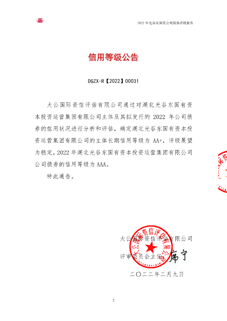大公:2022年湖北光谷东国有资本投资运营集团有限公司公司债券信用评级报告.pdf