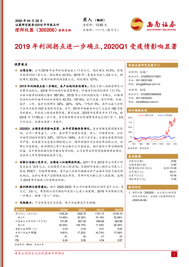 西南证券:理邦仪器(300206)-2019年利润拐点进一步确立,2020Q1受疫情影响显著.pdf