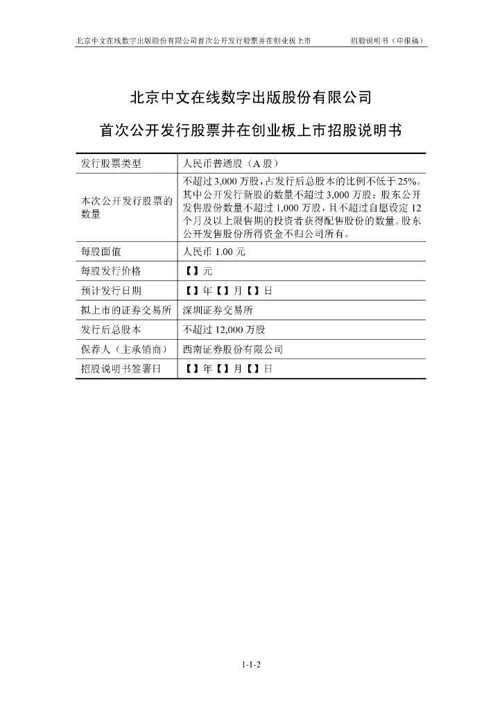 北京中文在线数字出版股份有限公司深交所创业板IPO上市招股说明书.pdf