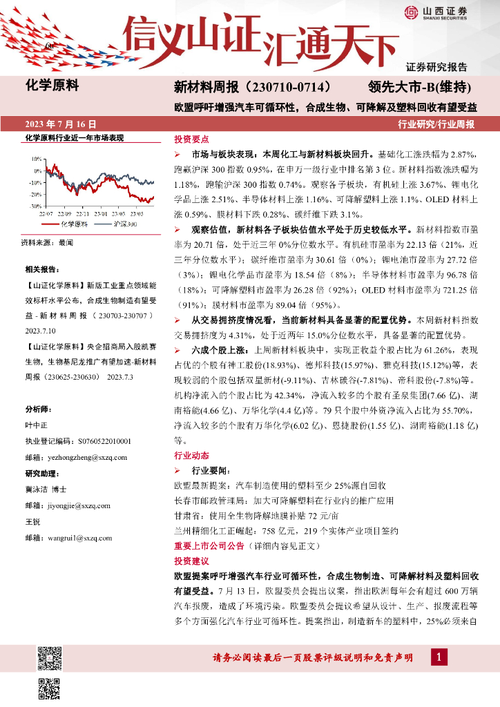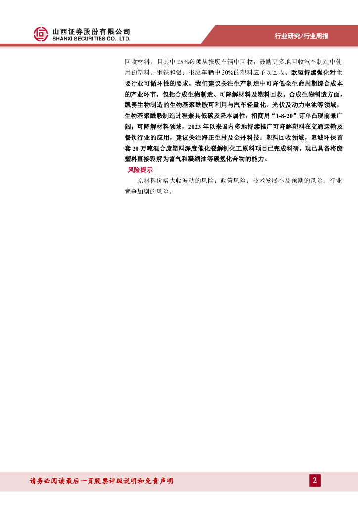 山西证券:新材料周报:欧盟呼吁增强汽车可循环性,合成生物、可降解及塑料回收有望受益.pdf
