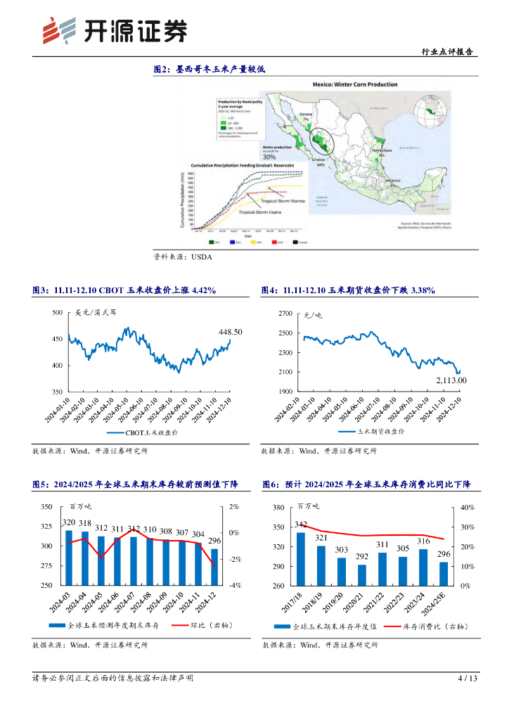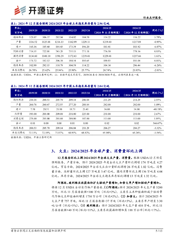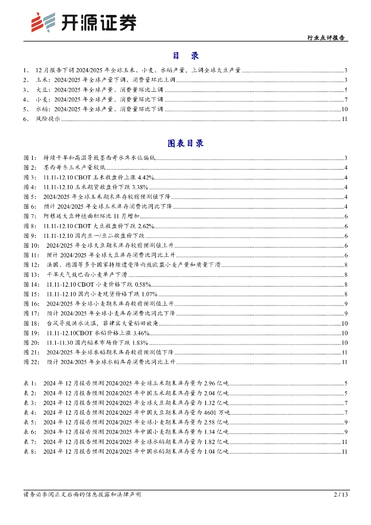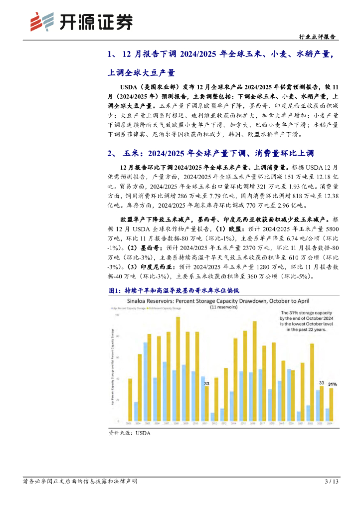 开源证券:行业点评报告:12月USDA农产品报告下调全球玉米、小麦、水稻产量,上调全球大豆产量.pdf