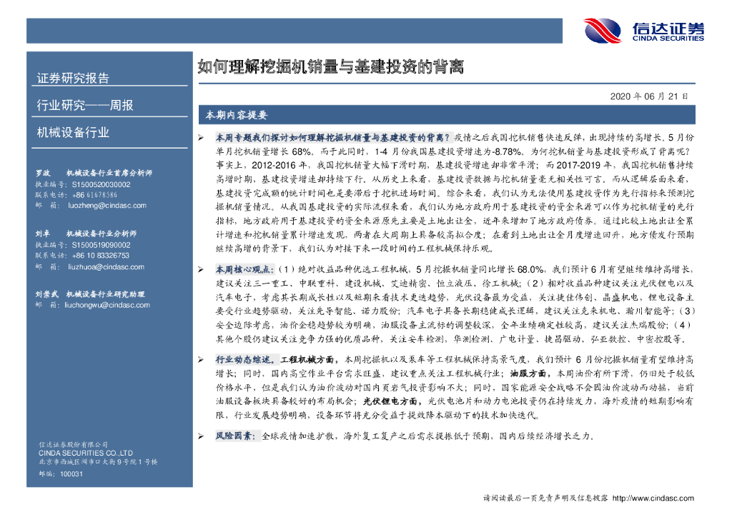 信达证券:机械设备行业周报:如何理解挖掘机销量与基建投资的背离.pdf