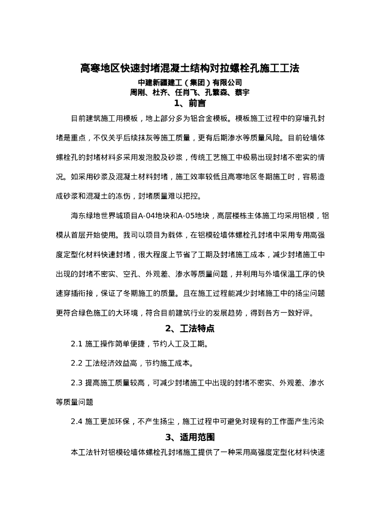 QHGF-2022121 高寒地区快速封堵混凝土结构对拉螺栓孔施工工法.doc