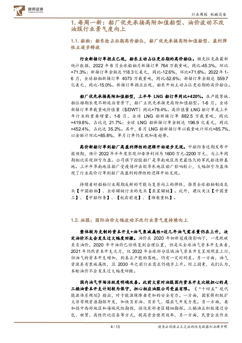 德邦证券:机械设备第37期周观点:船厂优先承接高附加值船型,油价波动不改油服行业景气度向上.pdf