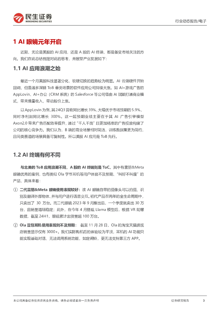 民生证券:电子行业动态:AI眼镜投资思考.pdf